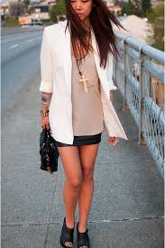 O proximo look ta Peeeeeerfeeeito ! E tanbem vem acompanhado da saia bandage nesse look a gente usa uma blusinha super meiga soltinha de tecido fino por cima da saia ultilizando a saia bandage preta e um blazer lindo branco e longo esse estilo é super básico pra vocÇe ir em um encontro em um passeio no shopping tanbem tá otimo e cai super bem ! Esse colcar de cruz longo ficou perfeiito porque ? Por que como a blusa e soltinha e grande deixa a roupa mais formal ( se é que entende u.U ) Um salto com essa roupa fica super iper mega lindo !